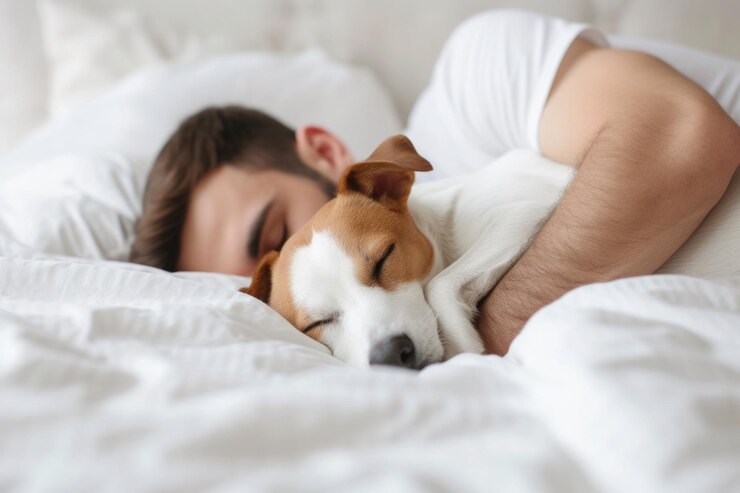 Czy powinniśmy pozwalać spać psu w Naszym łóżku ? Czy spanie z psem to dobry pomysł ? Czy pies ma wpływ na Nasz sen i samopoczucie ? Czy wybór pościeli ma znaczenie podczas spania z psem w jednym łóżku ?