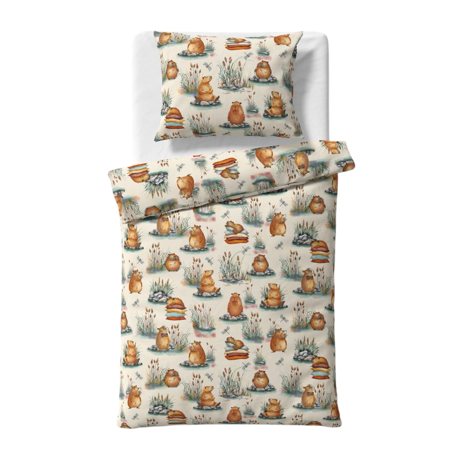 Komplet pościeli Bawełna 135x100 Wzór: kapibary ekri