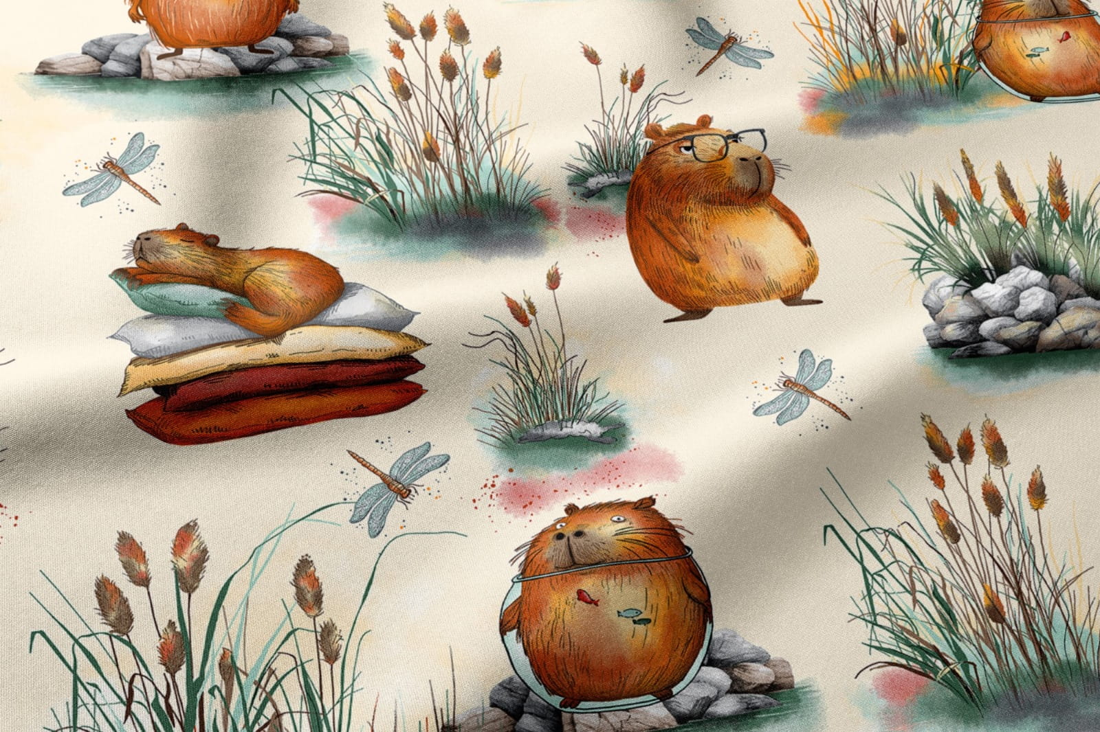 Wprowadź do pokoju swojego dziecka atmosferę spokoju i bliskości natury dzięki pościeli w wyjątkowe kapibary. Motyw uroczych stworzonek otoczonych trawami i gałązkami w delikatnych, pastelowych barwach tworzy harmonijną i przytulną całość. To wzór, który idealnie wpisuje się w modne, naturalne aranżacje wnętrz.