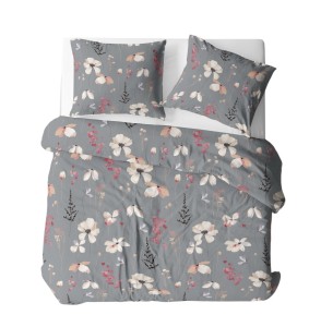 Komplet pościeli Bawełna płaska 200x220 kwiaty na szarym