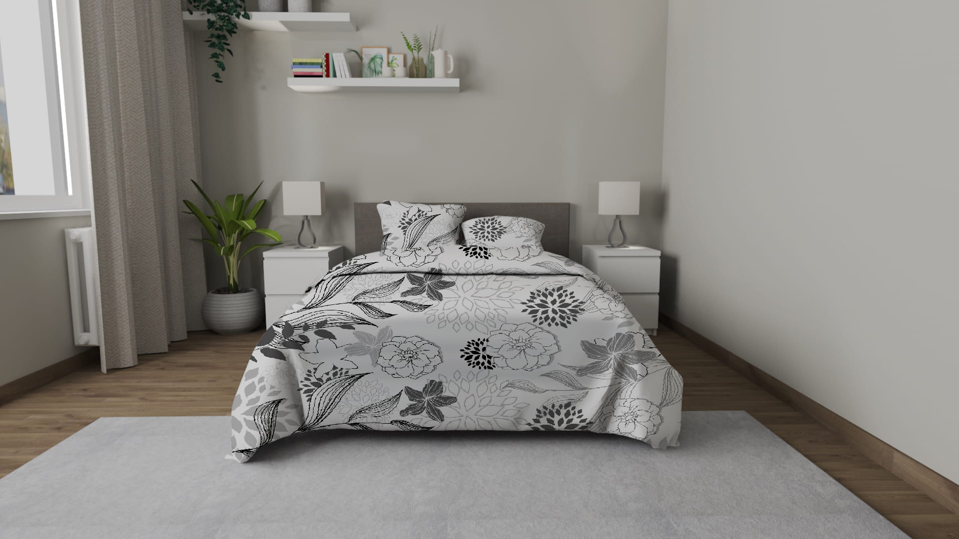 Komplet pościeli Kora 160x200 Szare rośliny