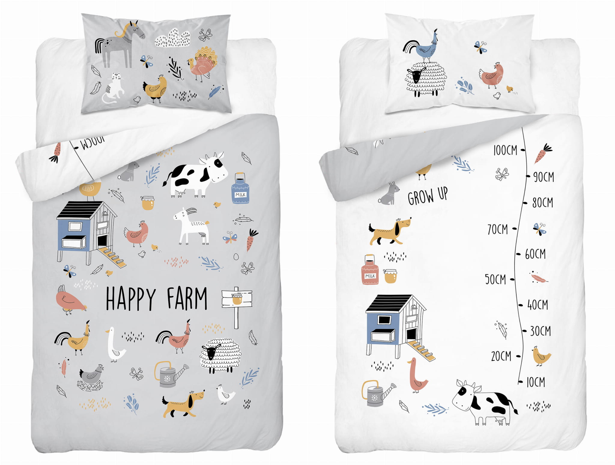 Pościel dziecięca 100x135 + 40x60 – Happy Farm Grey