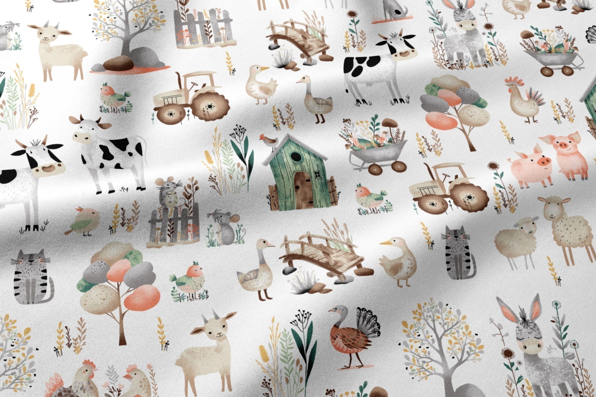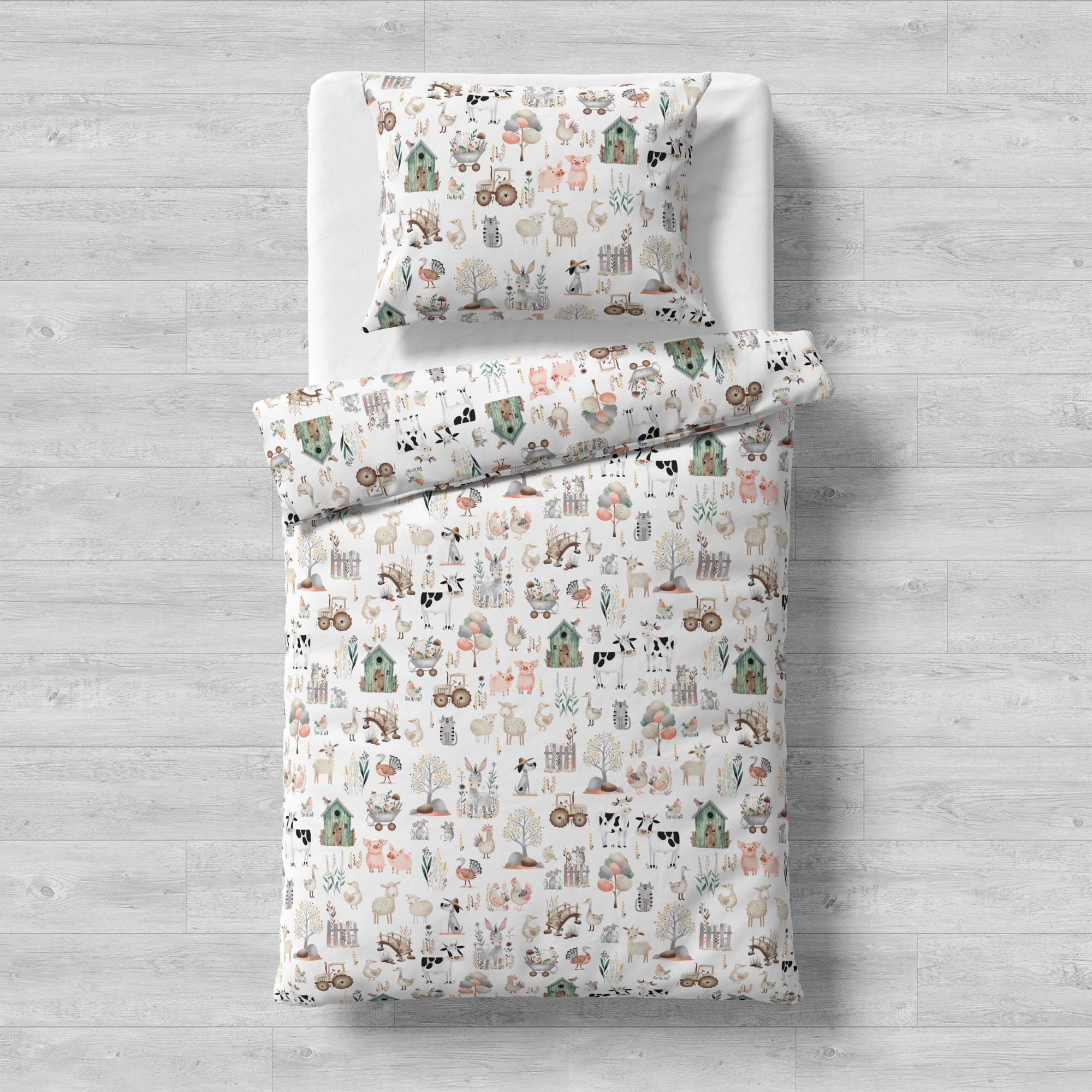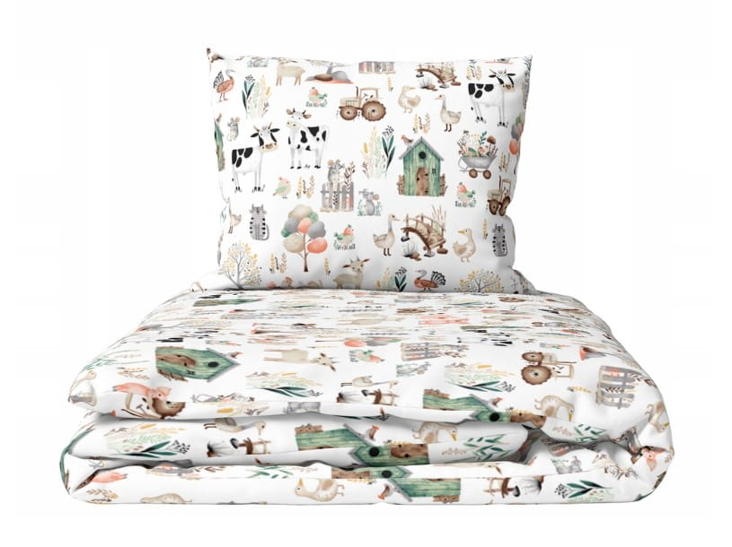 Komplet pościeli dziecięcej 100x135 WZÓR: farma na bieli