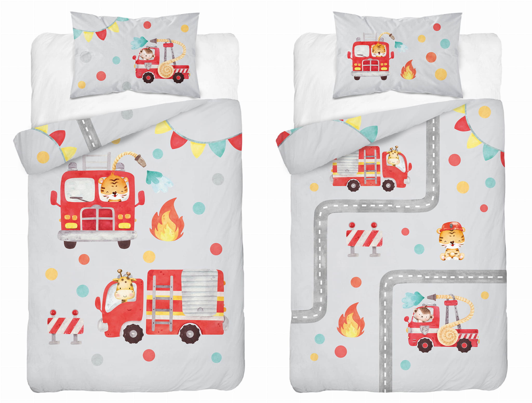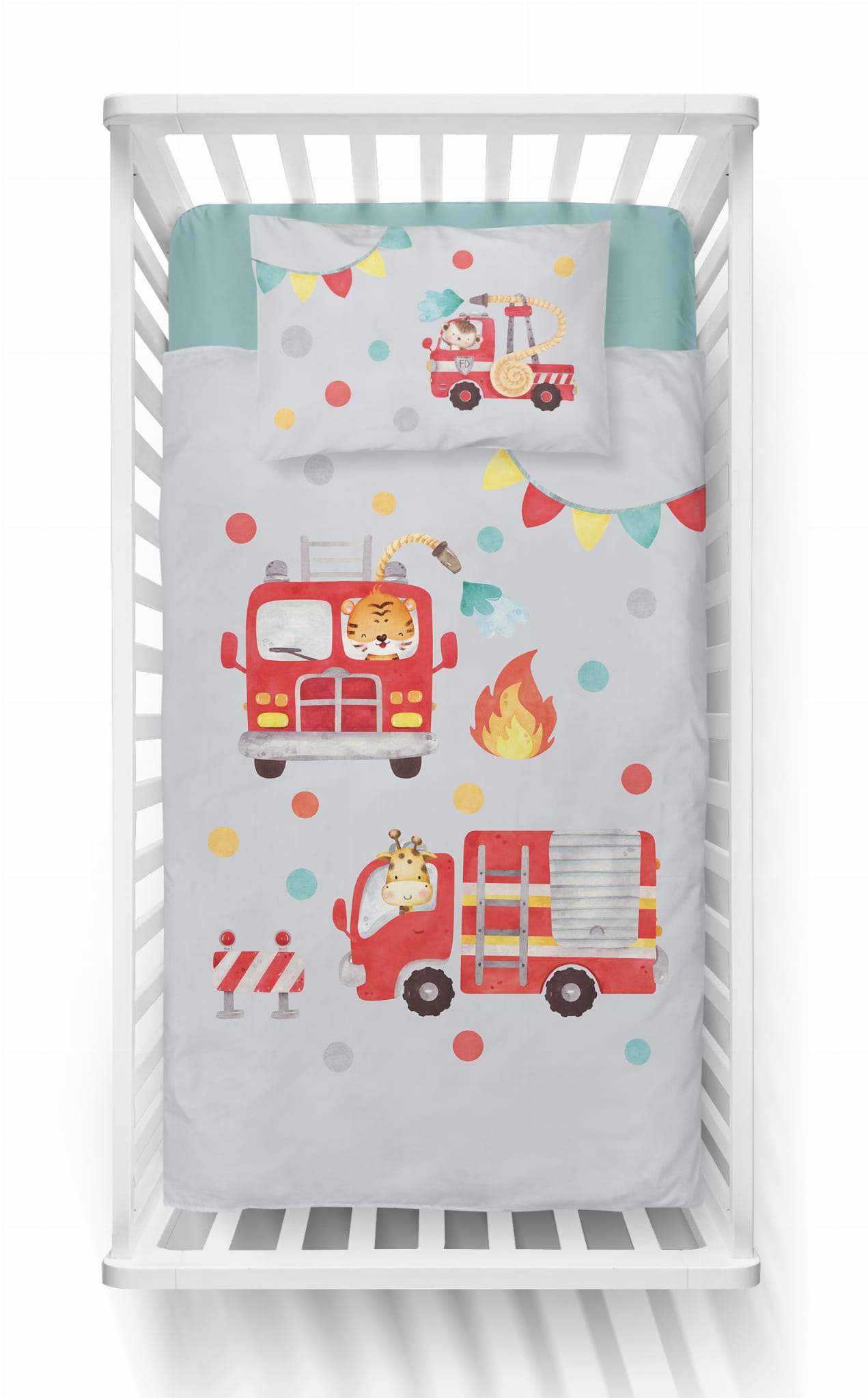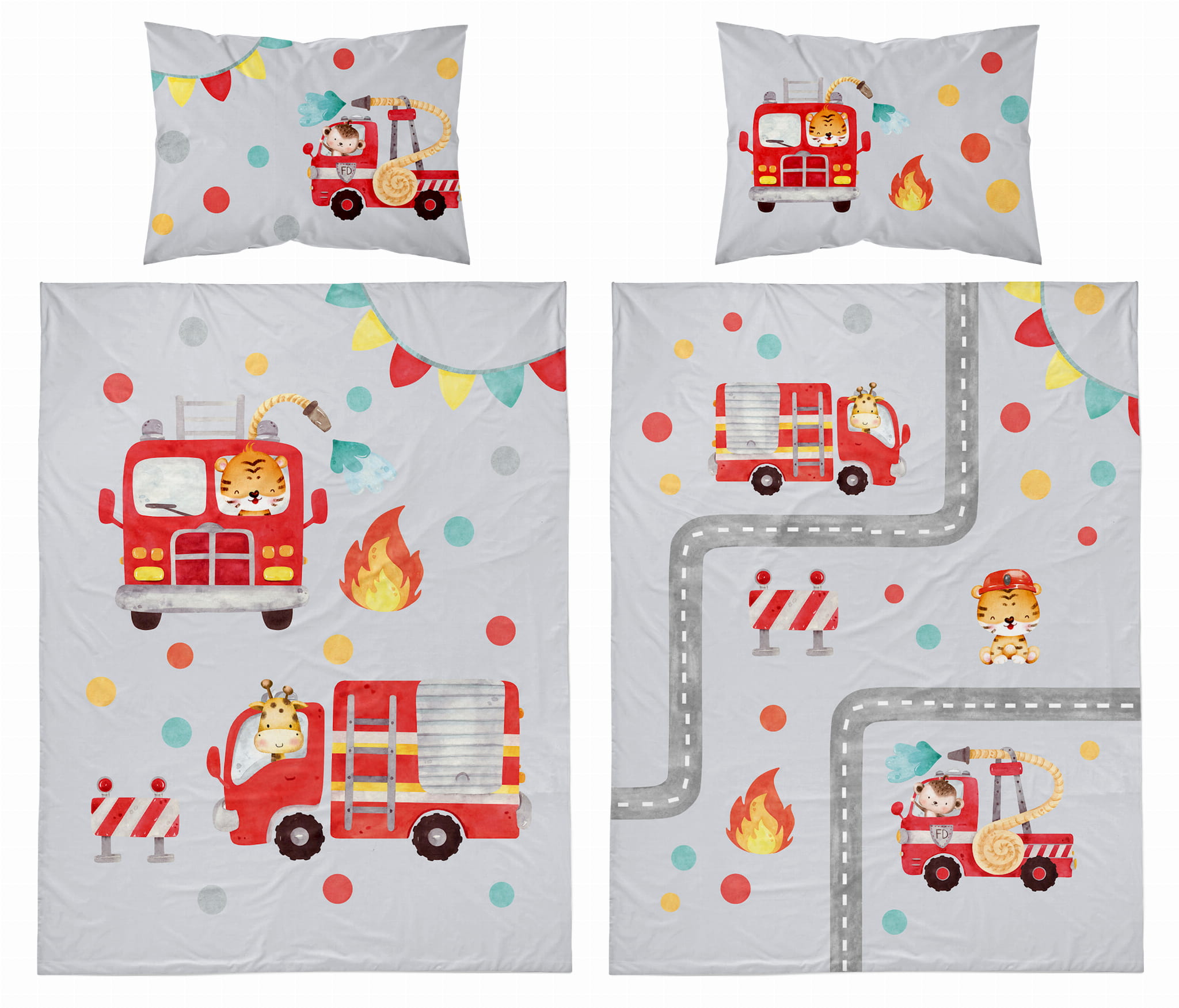 Wzór: pościel dziecięca ze strażą pożarną i zwierzątkami