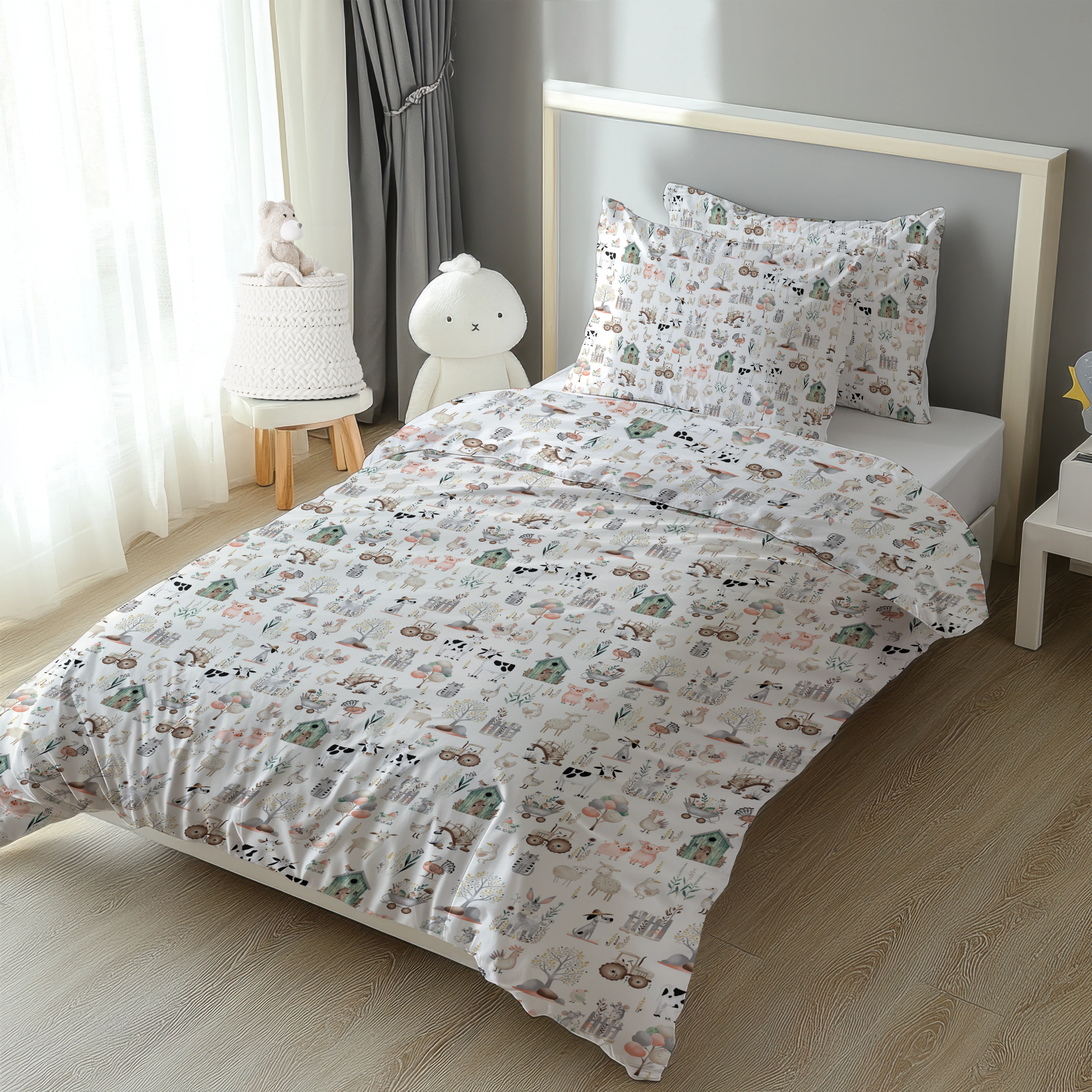 Komplet pościeli dziecięcej 140x200 WZÓR: farma na bieli