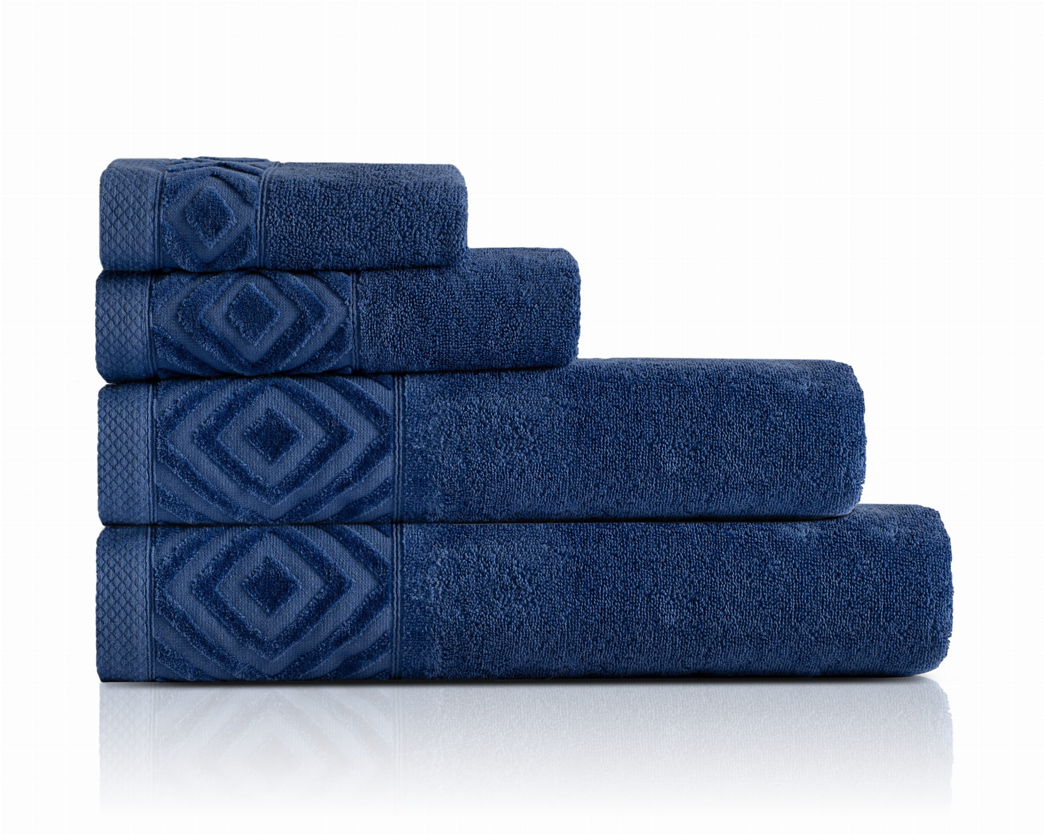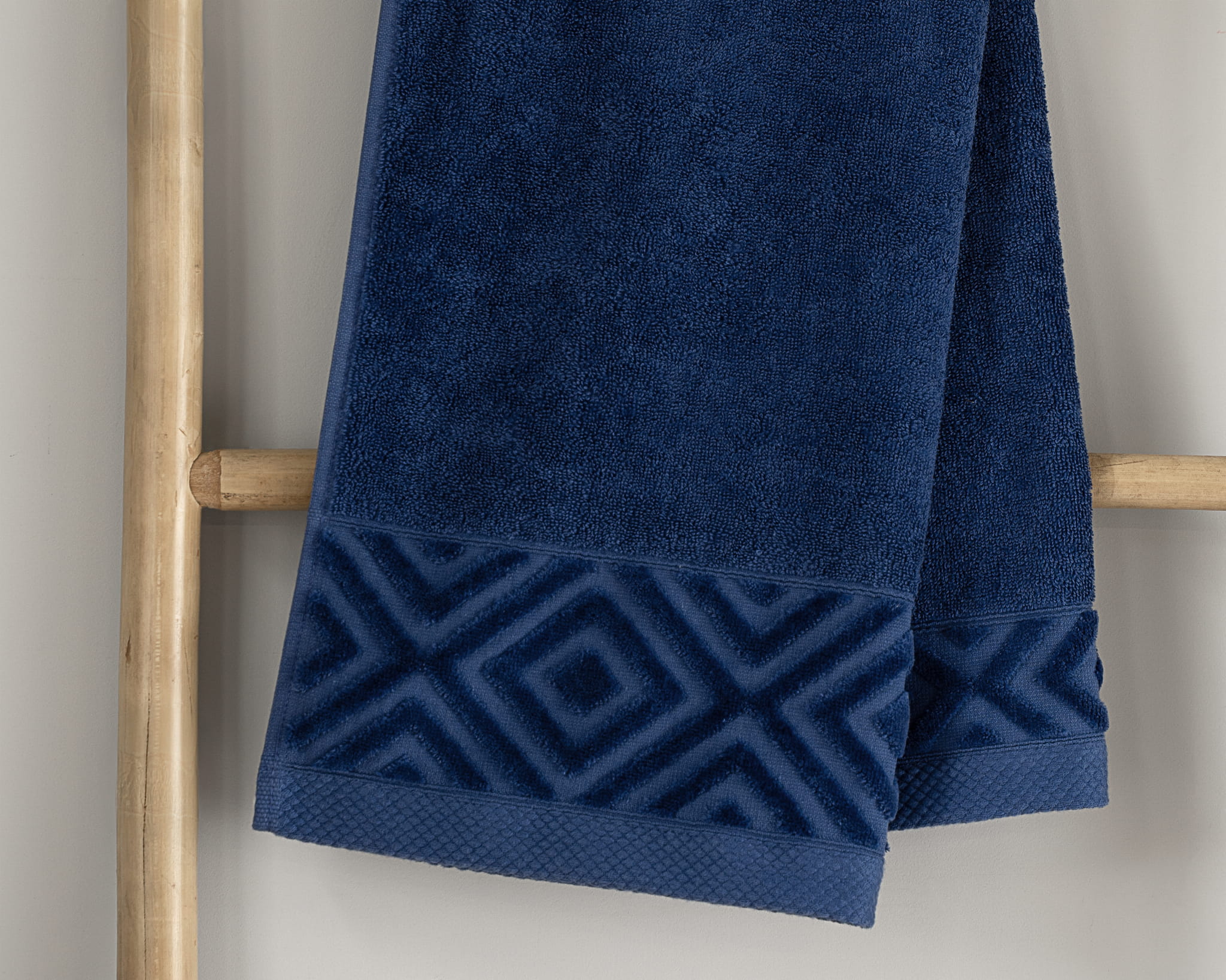 Elegancki ręcznik w głębokim granatowym kolorze, wykonany z wysokiej jakości bawełny, która zapewnia doskonałą chłonność oraz wyjątkową miękkość. Gramatura 550 g/m² sprawia, że ręcznik jest gruby, trwały i luksusowy w dotyku, idealny do codziennego użytku.