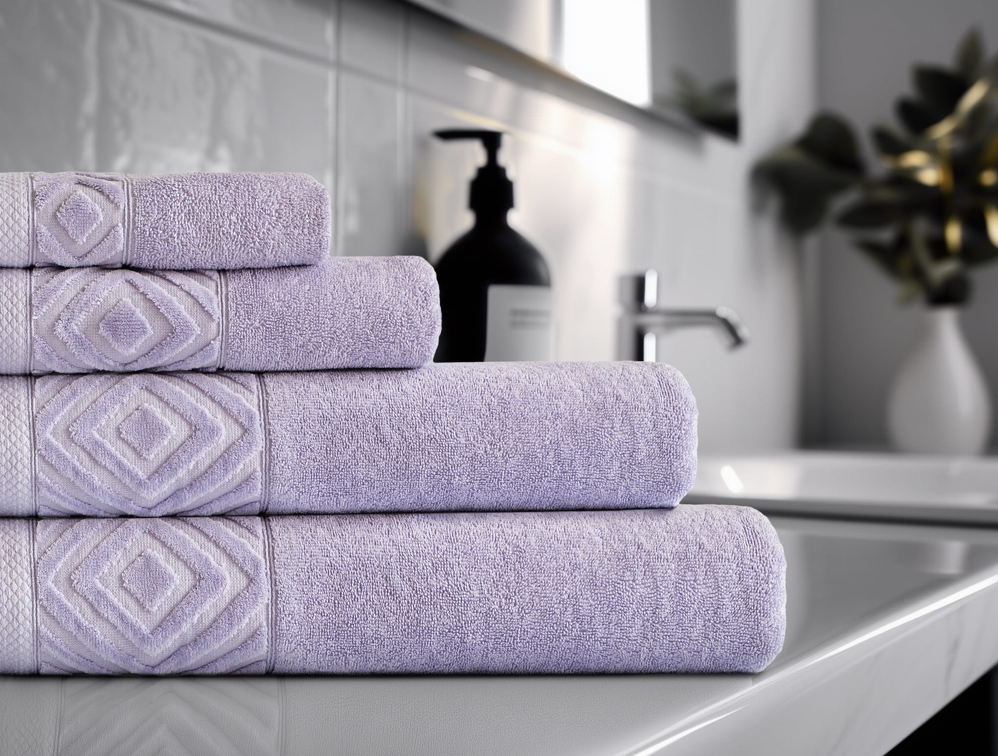 Subtelny ręcznik w delikatnym liliowym kolorze, który wnosi do łazienki lekkość, świeżość i elegancję. Wykonany z wysokiej jakości 100% bawełny, zapewnia doskonałą chłonność oraz wyjątkową miękkość, idealną do codziennej pielęgnacji. Gramatura 550 g/m² sprawia, że ręcznik jest gruby, trwały i przyjemny w dotyku.