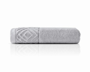 Stylowy ręcznik w jasnoszarym odcieniu, wykonany z wysokiej jakości bawełny, która zapewnia wysoką chłonność oraz przyjemną miękkość w codziennym użytkowaniu. Gramatura 550 g/m² sprawia, że ręcznik jest gruby, trwały i komfortowy, a jednocześnie szybkoschnący.