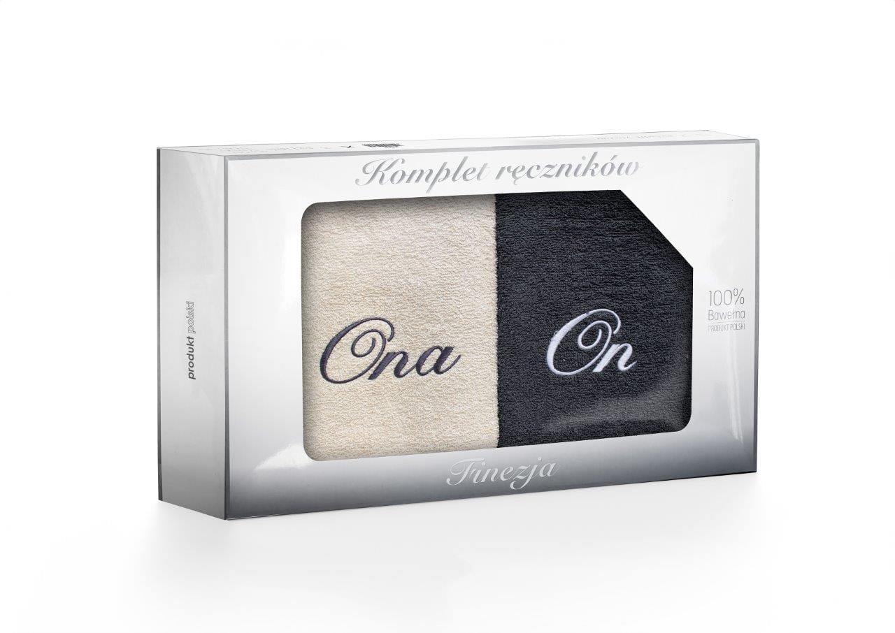 Zestaw ręczników frotte "ONA I ON" krem/grafit